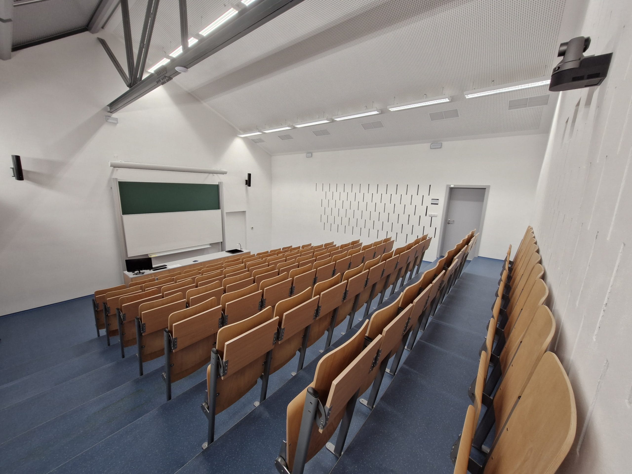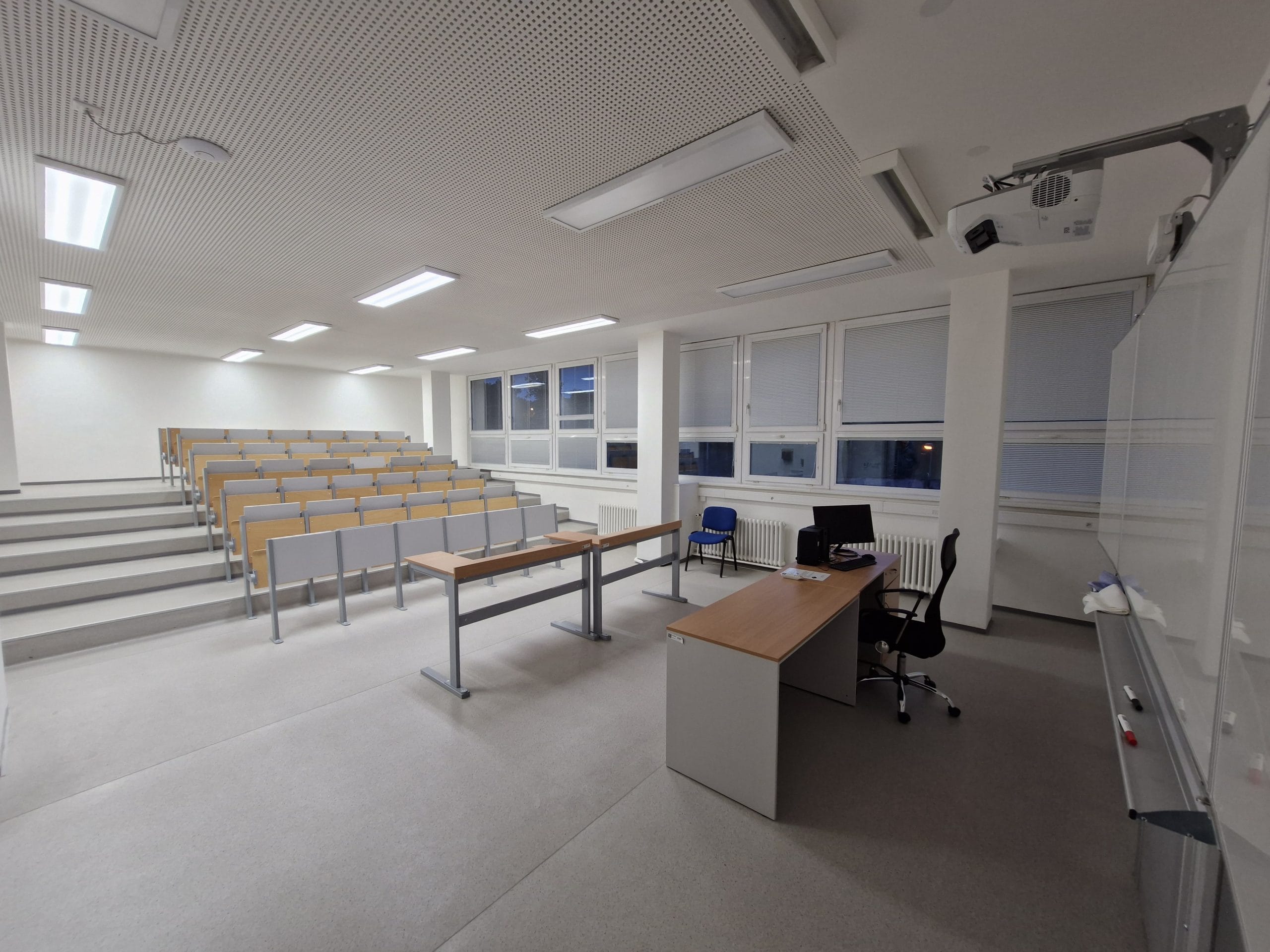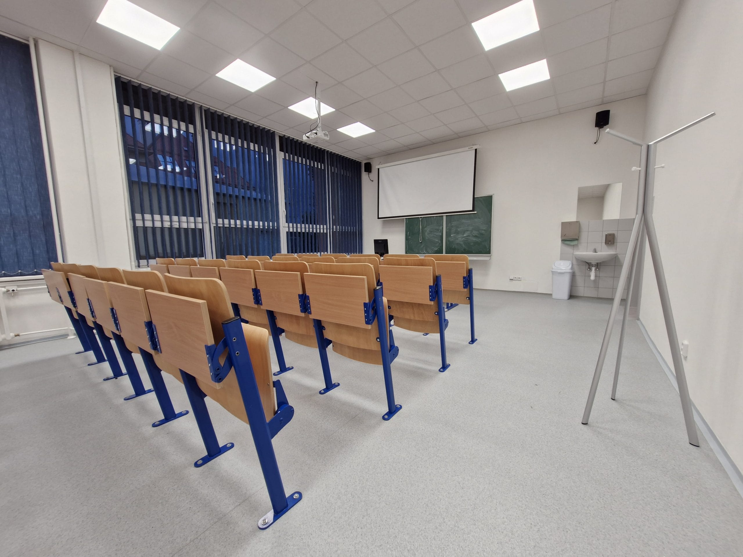 V objektu auly a spojovacího koridoru proběhlo zateplení obvodových stěn, stropu a střechy, výměna oken a dveří a instalace nové audiovizuální techniky. Aula byla upravena tak, aby splňovala požadavky pro výuku imobilních studentů.